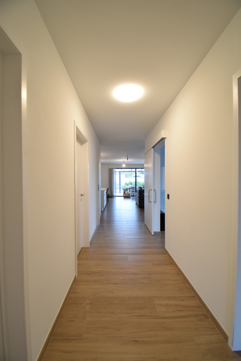 De woning is rolstoelvriendelijk (grote schuifdeuren, aangepaste badkamer en keuken) en bevindt zich op het gelijkvloers.
