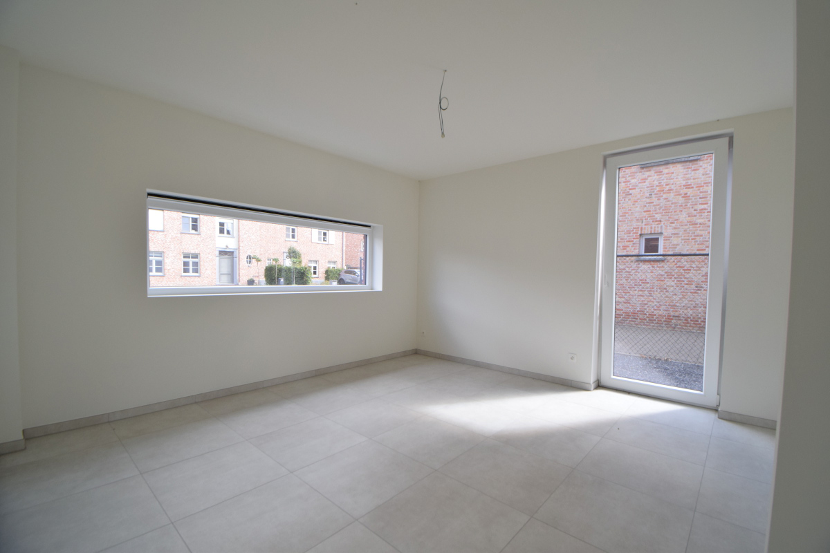 Indeling: inkomhal met gastentoilet en trap naar de bovenverdieping. De inkomhal geeft uit op een leefruimte bestaande uit een zithoek vooraan en een eethoek achteraan met volledig geďnstalleerde open keuken met ontbijthoek die via een schuifraam uitgeeft op het terras en de tuin achteraan. Aansluitend is er een wasruimte met een achterinkom.