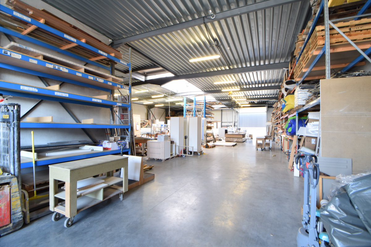 De kmo-unit heeft een nuttige oppervlakte van circa 605mē met een vrije hoogte van 6 meter, is voorzien van geïsoleerde gepolierde betonvloer met VLOERVERWARMING (verschillende kringen), dubbel geïsoleerde lichtstraat met brandluiken, stuurbare verlichting, 10 afzonderlijk afgezekerde 380V en 220V stopcontacten , 2 automatische sectionaal poorten van 4,5 x 4,5 meter, Brand- en camerabeveilinging, persluchtleidingen en een alarmsysteem.