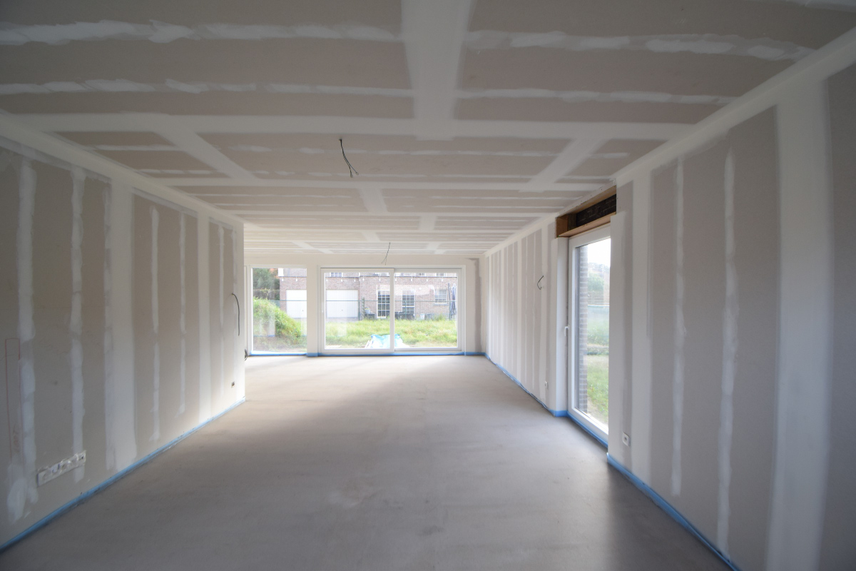 De woning wordt volledig afgewerkt, behoudens de keuken, hiervoor is een budget van € 15.000,- excl. btw voorzien en de koper heeft inspraak in de afwerking van de keuken..