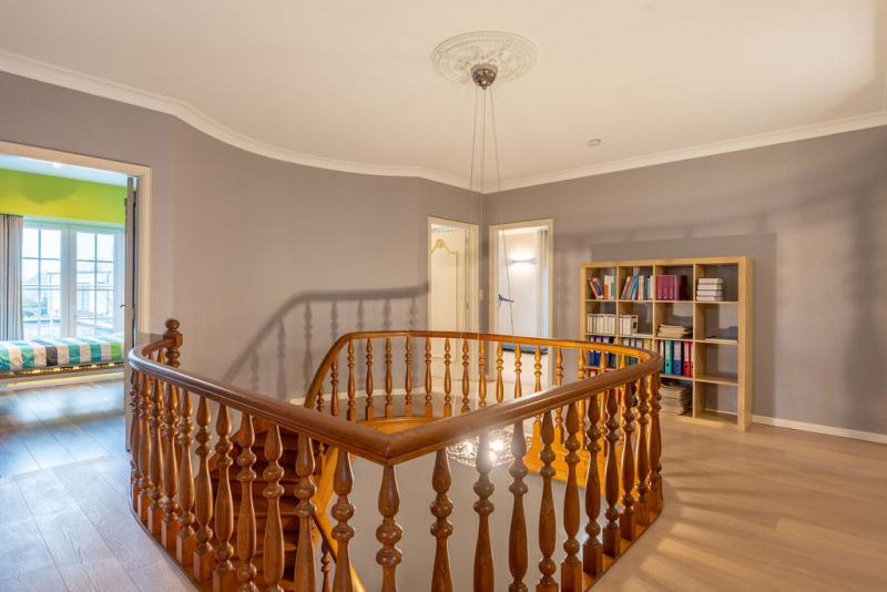 De eerste verdieping bestaat uit een imposante nachthal die uitgeeft op vijf volwaardige slaapkamers en 2 badkamers waardoor ze uitermate geschikt is voor grote gezinnen of wie extra ruimte nodig heeft voor bureau- of hobbydoeleinden. Verder is er een grote zolderruimte, bereikbaar via een vaste trap, die nog tal van mogelijkheden biedt als hobbyruimte, man-cave, speelkamer of extra slaapkamers.