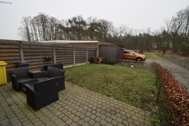 De leefruimte geeft via een raam uit op het terras en de tuin achteraan met zicht op de groene omgeving. Er is geen inkijk in het appartement.