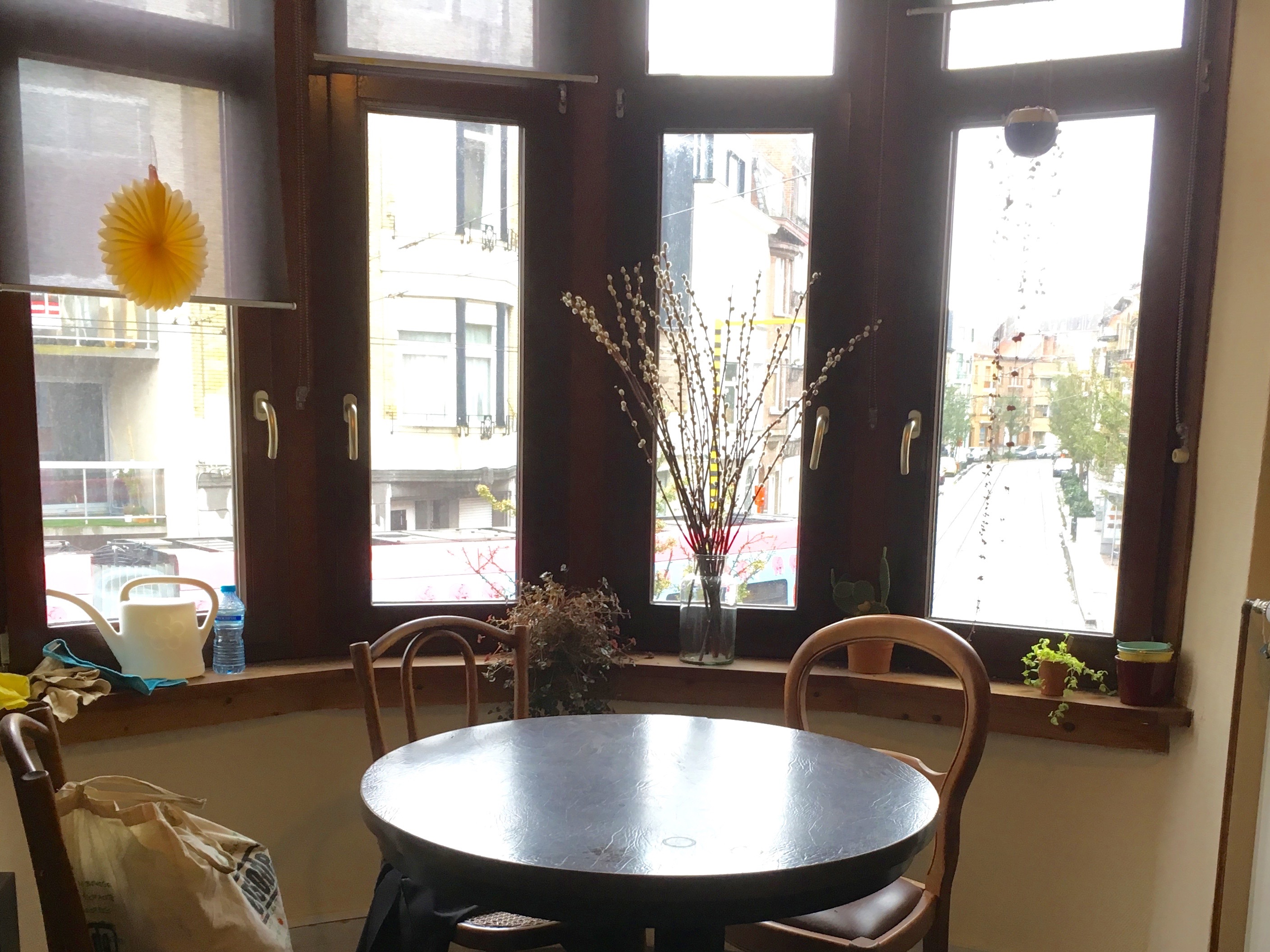 Studio in het centrum van Gent, bestaande uit 3 ruimtes.Een woonkamer met open keuken aan de straatzijde,