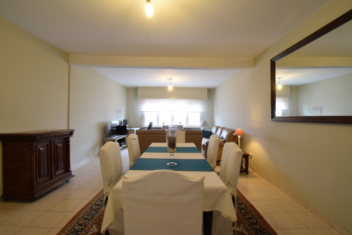 Het appartement bestaat uit een inkomhal met apart gastentoilet, vestiaire, de inkomhal geeft uit op een mooie leefruimte met zithoek, eethoek.