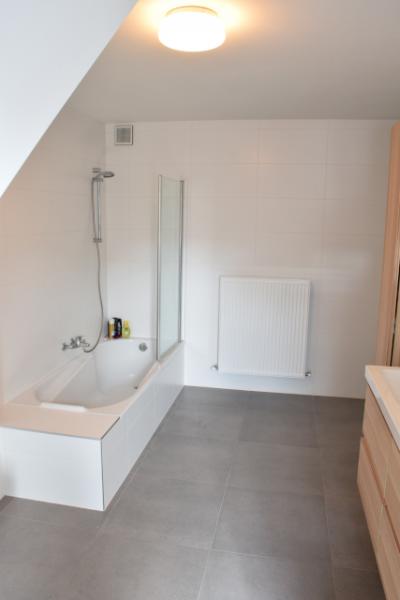 Badkamer 1  13,51 mēRuime badkamer met dubbele lavabo, ligbad met douchewand en toilet.