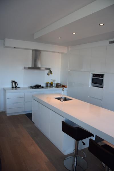 De keuken is volledig ingericht met gasfornuis, afzuigkap, inbouw ijskast en vaatwasser.