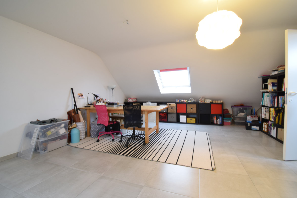 Onder dak is er een volledig ingerichte zolderruimte, ideaal als 4de slaapkamer, hobbyruimte, bureauruimte, fitness-ruimte, ... .