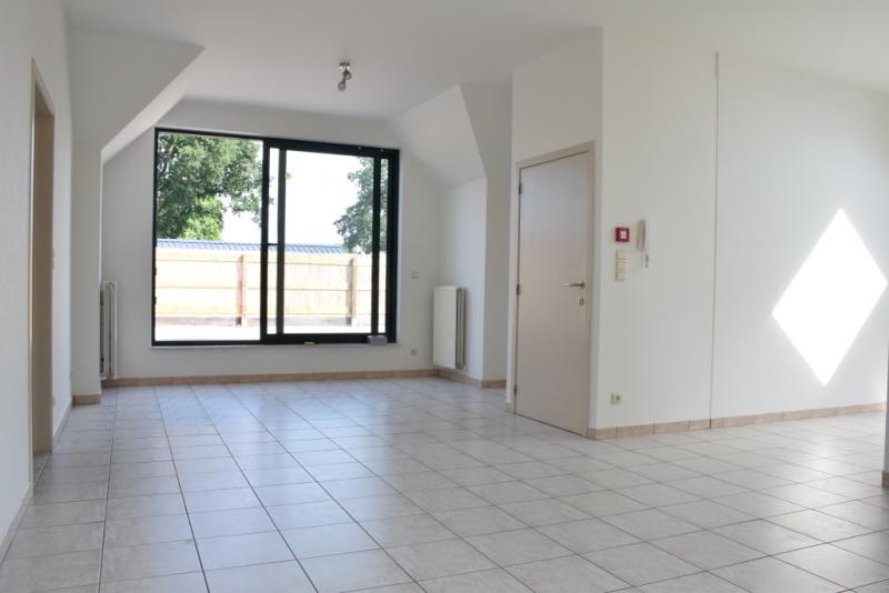 Het appartement bestaat uit een ruime woonkamer met aanpalend een volledig ingerichte keuken met eethoek. De woonkamer geeft via een schuifraam uit op het groot dakterras (30 mē) achteraan.