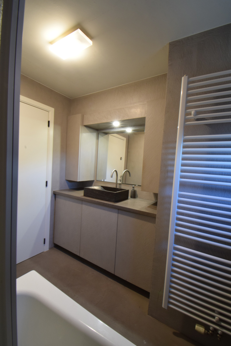 | Badkamer 1 | 5,0 m² | Badkamer bestaande uit een labvabomeubel, handdoekdrogerl en een ligbad met douchescherm. |