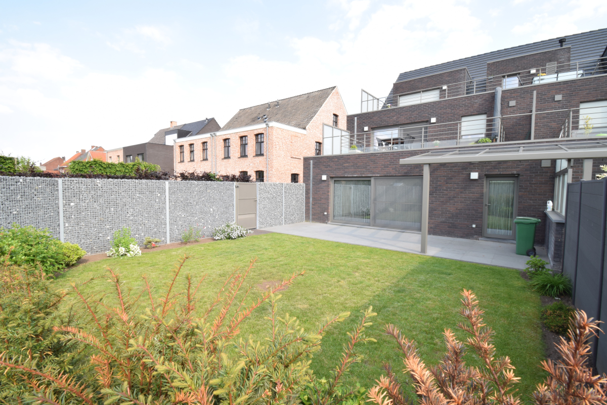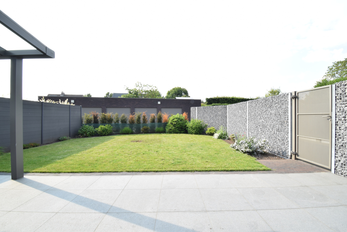 De leefruimte geeft via een deur of groot schuifraam uit op het terras en de tuin achteraan. Het terras is gedeeltelijk overdekt en de tuin is volledig afgesloten en voorzien van een toegangspoortje.
