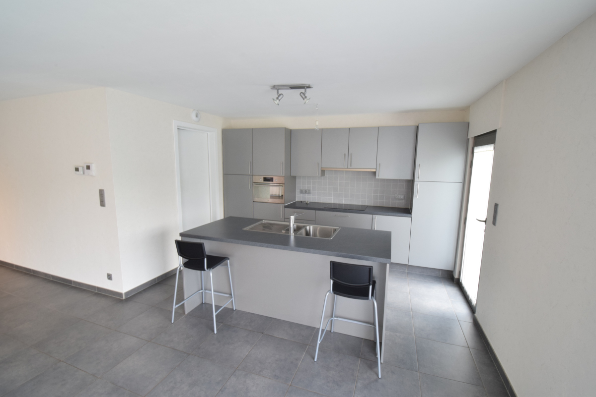 Recent gelijkvloers appartement met drie slaapkamers, tuin met terras en garage, centraal gelegen nabij het centrum van Tielen.Het appartement is 134mē groot en is als volgt ingedeeld: inkomhal met aanpalend gastentoilet en vestiaire, de inkomhal geeft uit op de nachthal die achteraan uitgeeft op een zeer ruime leefruimte met zithoek, eethoek en een volledig ingerichte open keuken (fornuis, inbouw ijskast, combi-oven, vaatwasser, ...).