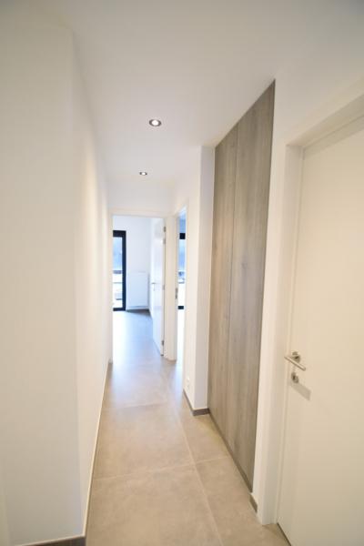Gelijkvloers nieuwbouw appartement met 2 slaapkamers, tuin met terras, ondergrondse garage en grote berging, centraal gelegen nabij het centrum van Tielen.Het appartement is 100mē groot en is als volgt ingedeeld: inkomhal met aanpalend gastentoilet en vestiaire, de inkomhal geeft achteraan uit op een zeer ruime leefruimte met zithoek, eethoek en een volledig ingerichte open keuken (fornuis, inbouw ijskast, microgolf-oven, vaatwasser, ...).