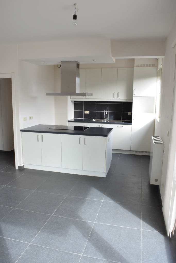 De open keuken is volledig ingericht met fornuis, afzuigkap, inbouw ijskast/diepvriezer en vaatwasser.