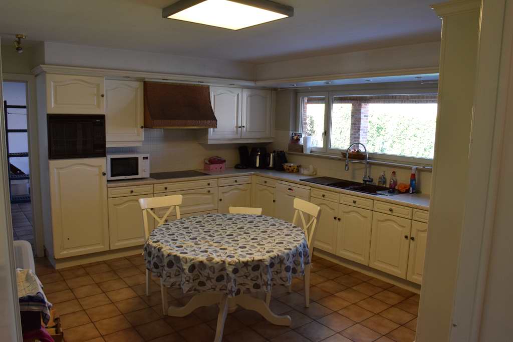 Ruime woning met 4 slaapkamers op een perceel van 2.077mē.De woning bestaat uit een inkomhal met vestiaire die uitgeeft op de leefkeuken en de ruime woonkamer.
