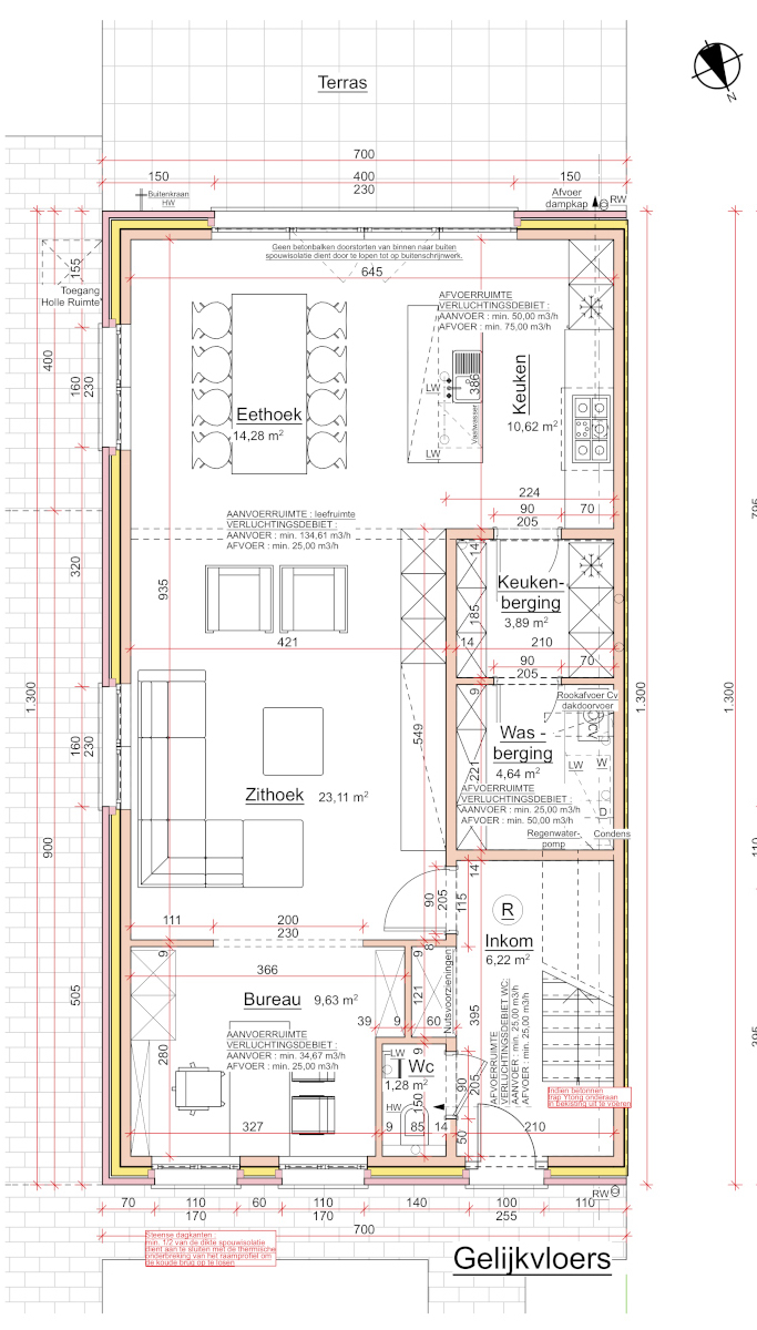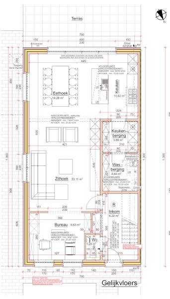 | Eethoek | 14,28 mē | Open ruimte ter hoogte van het eiland met zicht op de tuin achteraan. |