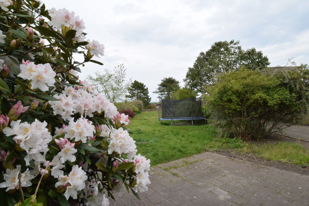 Achteraan is er een zeer grote tuin met achteraan een zwembad en tuinhuis, vooraan is er een ruime carport geplaatst.