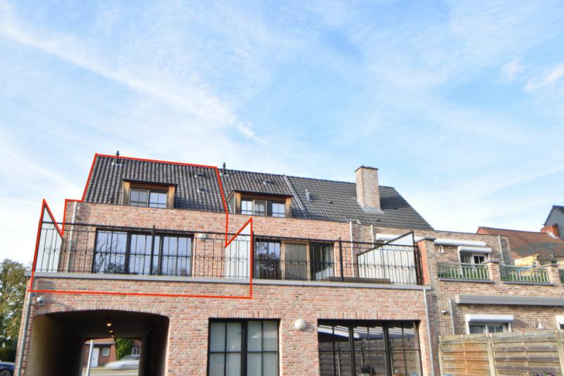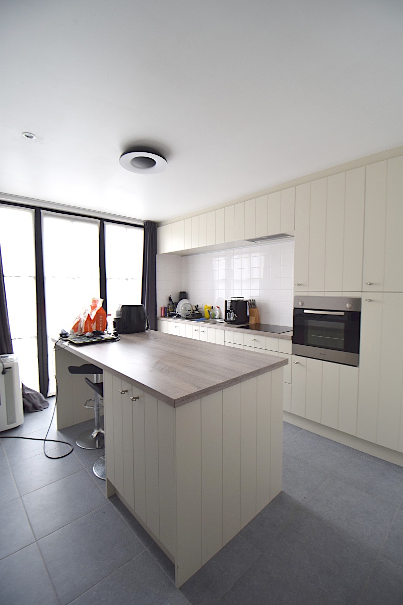 De duplex is gelegen op de eerste en tweede verdieping van een kleinschalige residentie.Het appartement bestaat uit een inkom met apart toilet en vestiaire, de inkom geeft uit op de leefruimte vooraan en een grote leefkeuken met ontbijthoek achteraan, de keuken is volledig ingericht en geeft via een raam uit op het terras achteraan met zicht op de groene omgeving. Er is geen inkijk in het appartement.