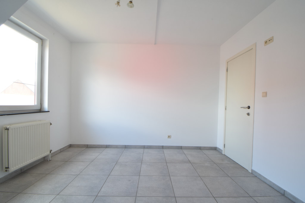 De leefruimte bestaat uit een zit- en eethoek en een open, ingerichte keuken. De woonkamer geeft via een schuifraam uit op een groot dakterras achteraan met een mooi uitzicht. De keuken is voorzien van een elektrisch fornuis, dampkap, oven, inbouwijskast en voldoende kastruimte.