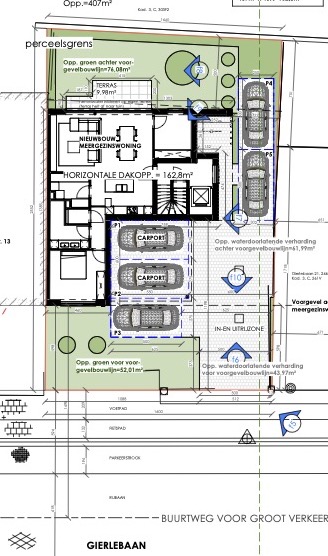 Per appartement is een autostaanplaats en grote berging voorzien die de koper verplicht dient aan te kopen.