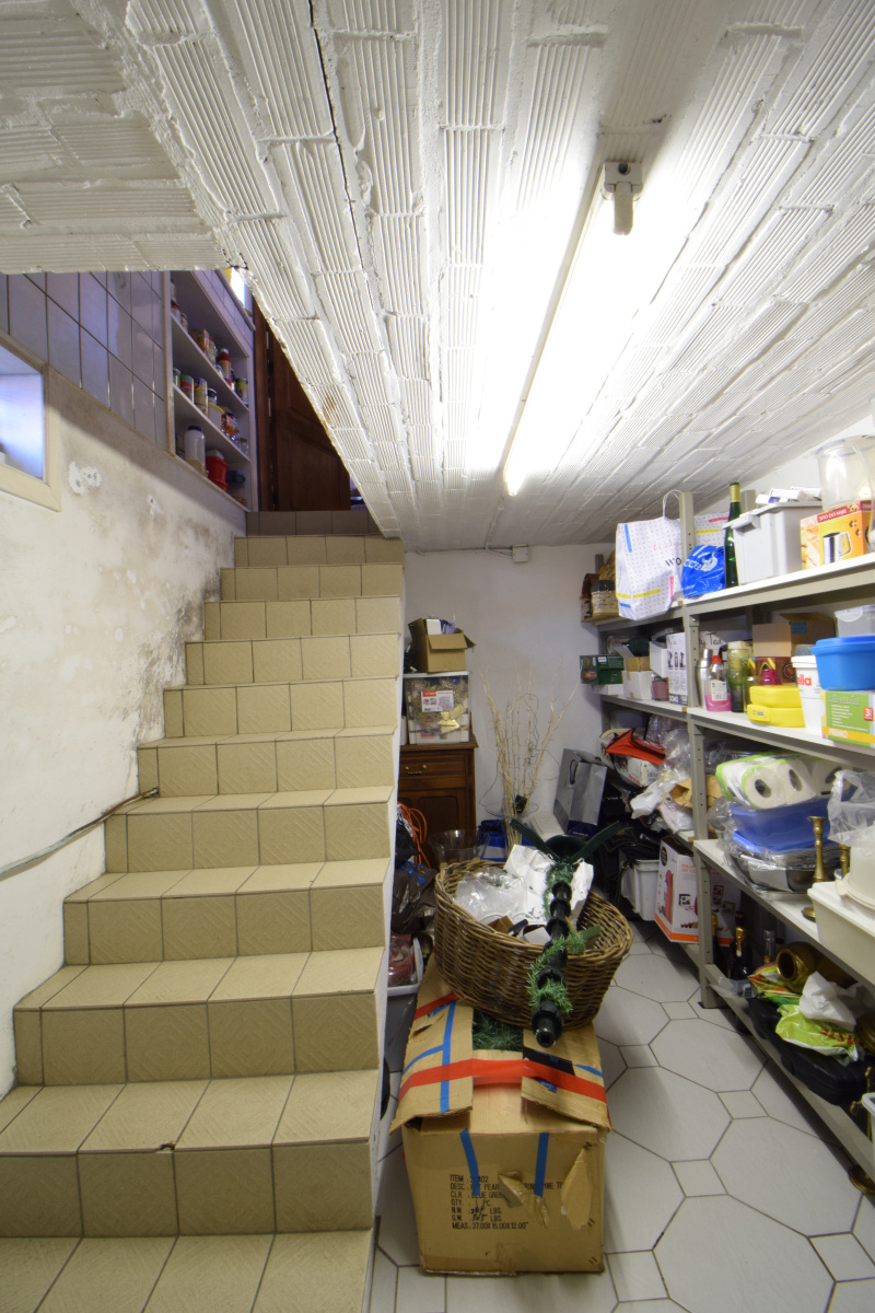 De woning beschikt eveneens over een kleine droge kelder en achteraan is er een wasruimte waar ook de Buderus verwarmingsketel op aardgas is geplaatst. Aansluitend is er een grote garage en een werkhuis.