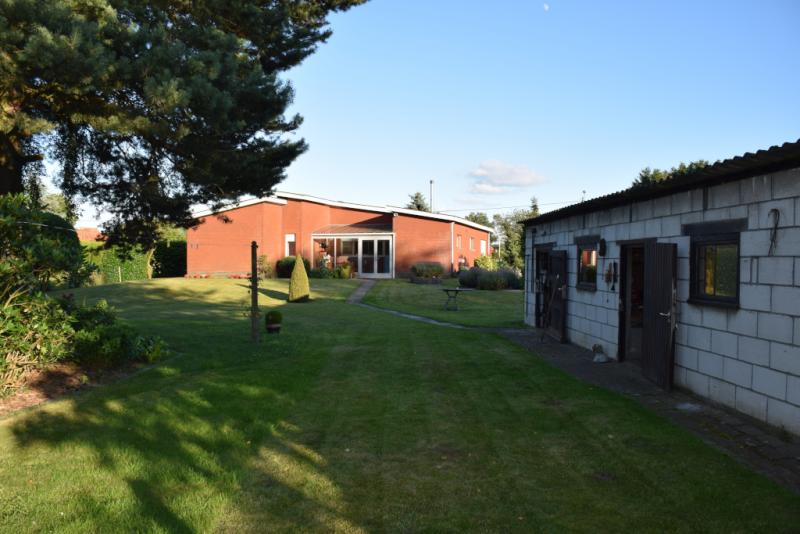 Laagbouw landhuis met 3 slaapkamers met een prachtige tuin op een perceel van 3.903mē, rustig en landelijk gelegen tussen Poederlee en Lichtaart.Indeling: een inkomhal die uitgeeft op de woonkamer, de keuken en de slaapkamers achteraan. De woonkamer is voorzien van drie grote raampartijen van waaruit men een mooi zicht heeft op de weilanden vooraan, achteraan is er een ruime eenvoudige keuken met eethoek. Aanpalend aan de keuken is er een koele berging, wasruimte met toilet en een eenvoudige badkamer met een wasmeubel en ligbad. Ter hoogte van de tuin staat achteraan een veranda/zomerkamer. Vanuit de veranda en een keuken heeft men een mooi zicht op de tuin en de weilanden achteraan.